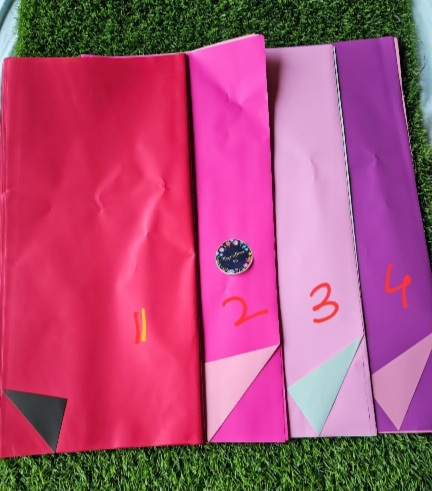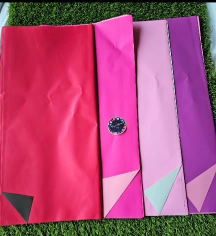 Dual shaded gift wrapping plastic sheets 15/- per sheet