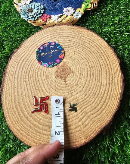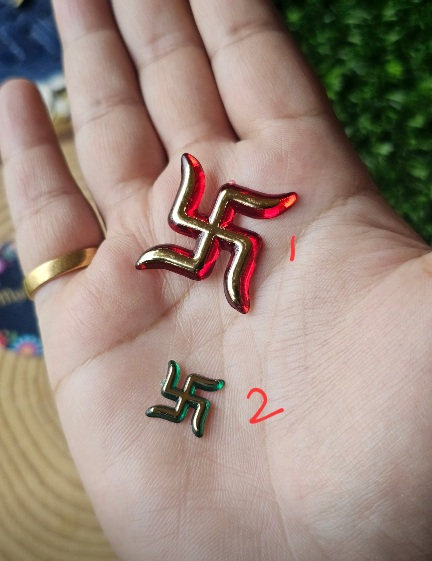 Swastik Embellishments in two sizes! Red 3/- Green 2/-